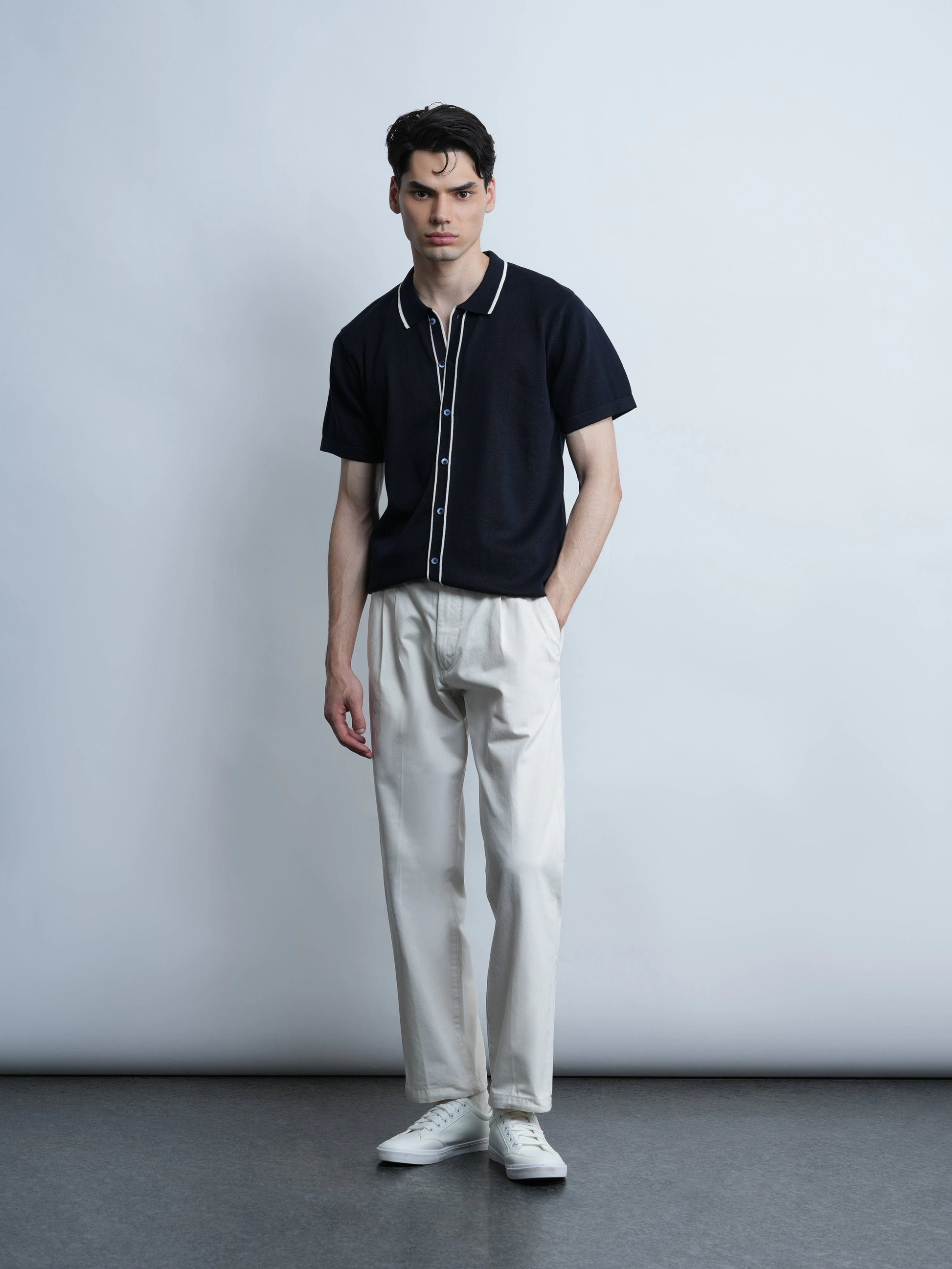 A classic redefined. The Accented Knit Shirt blends effortless ease with refined detailing, making it an elevated take on casual wear. Crafted from 100% premium cotton, it’s soft, breathable, and designed for all-day comfort. The piped detailing along the edges adds a subtle yet sophisticated touch, just enough to set it apart. Whether worn solo or layered under a jacket, this is the kind of piece that speaks to quiet confidence and understated style.
