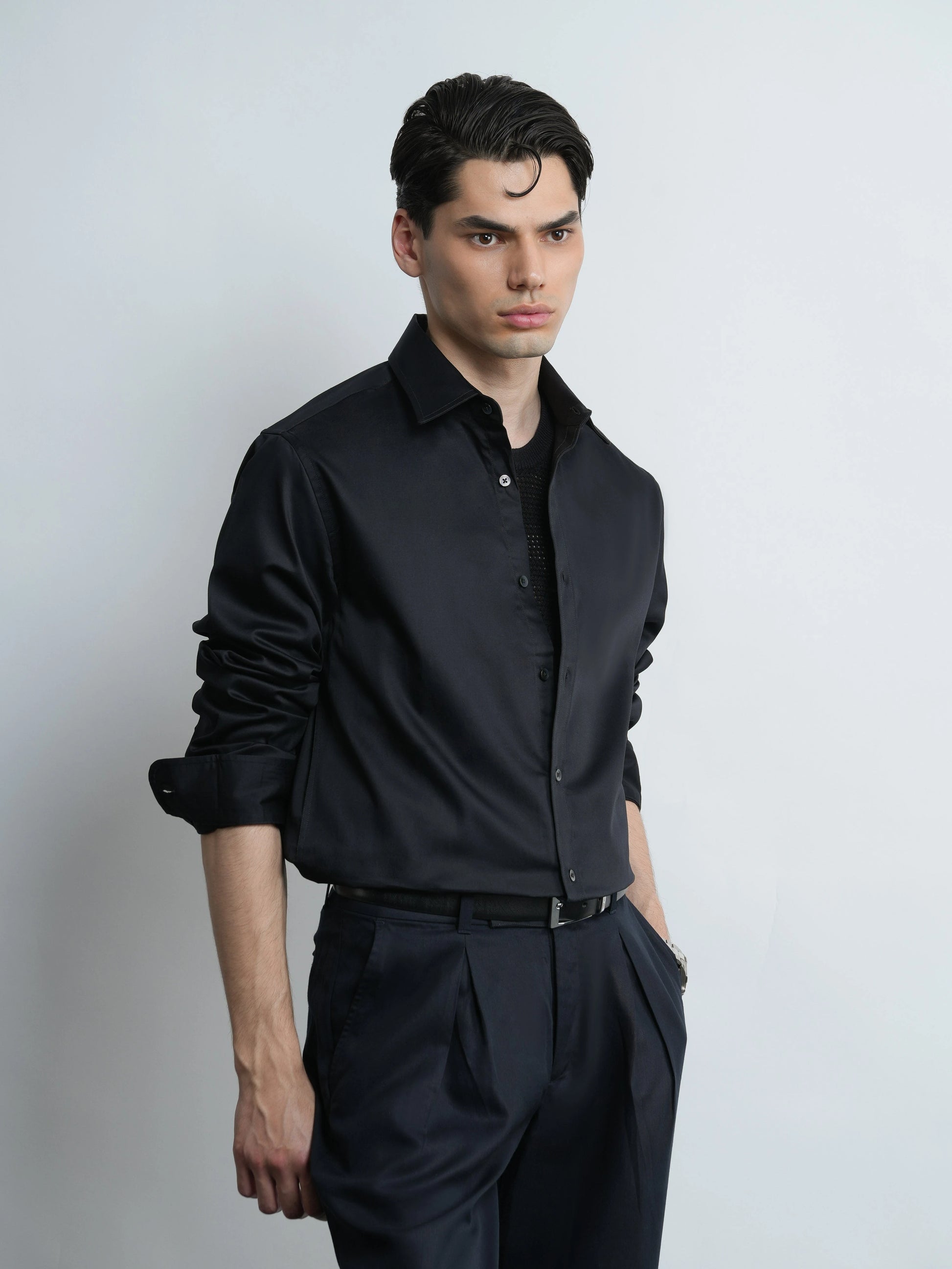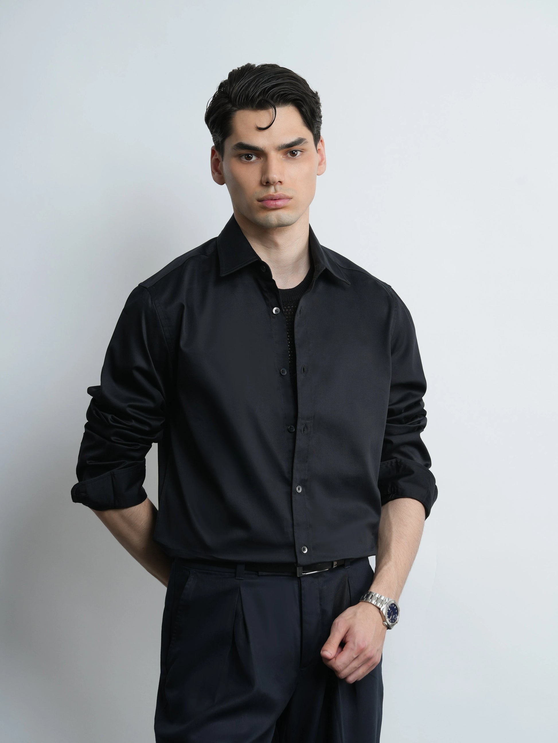 Home > After Hours Men > Men > Black Satin - Regular Fit Cotton Shirt