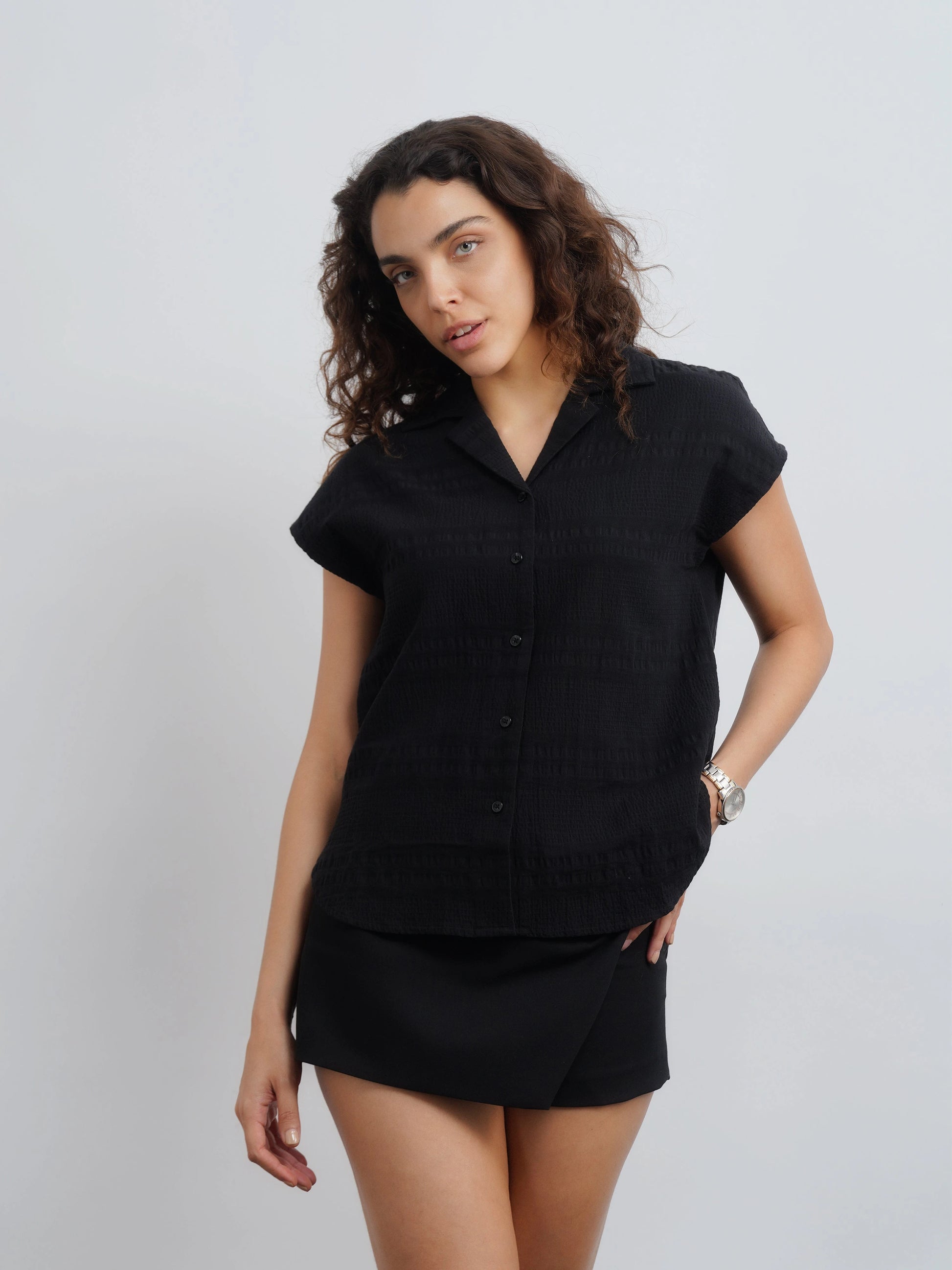 Home > After Hours Women > Price Drop - Women > Textured Camp Shirt - Black