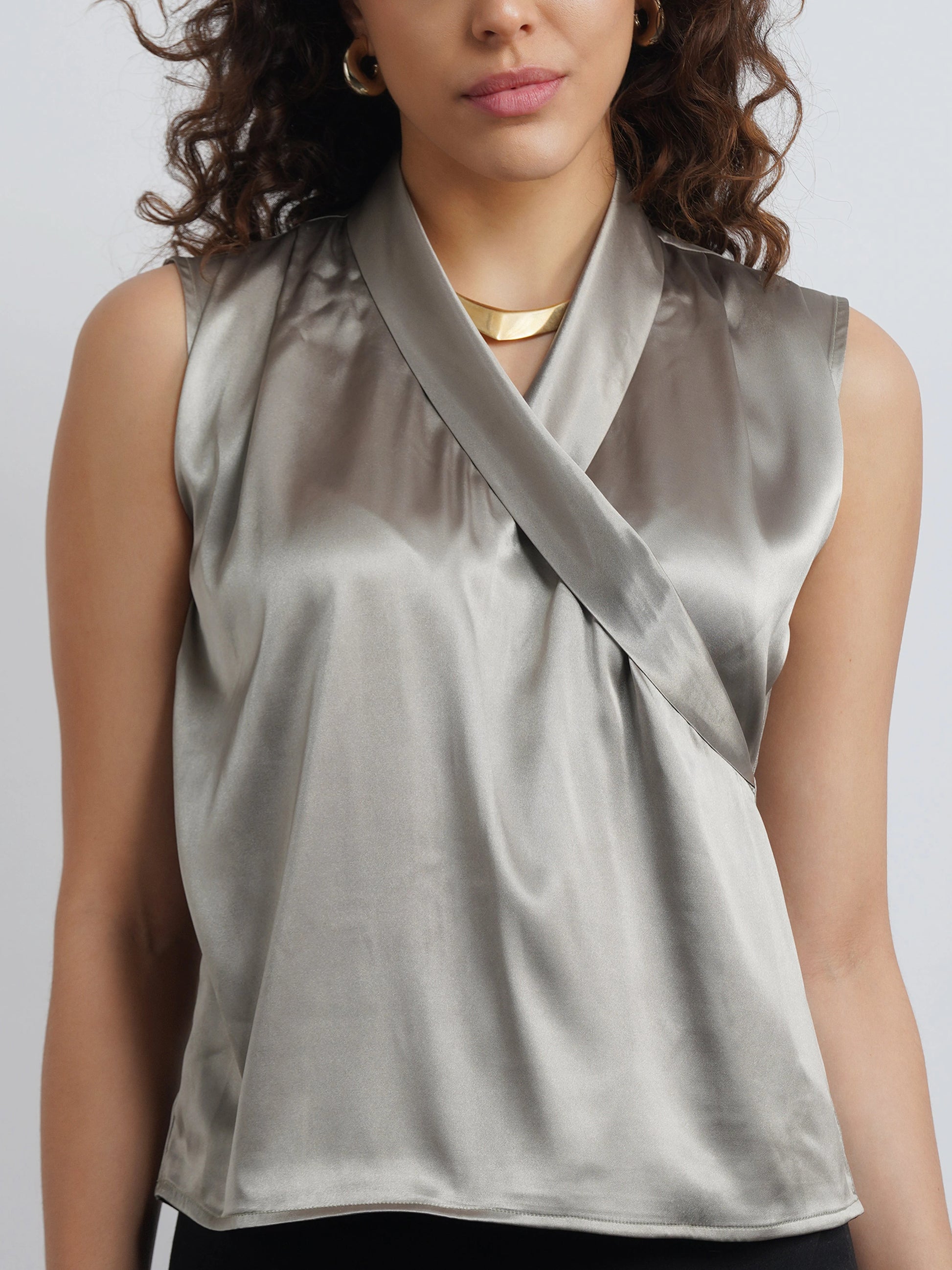 lapel satin top - olive