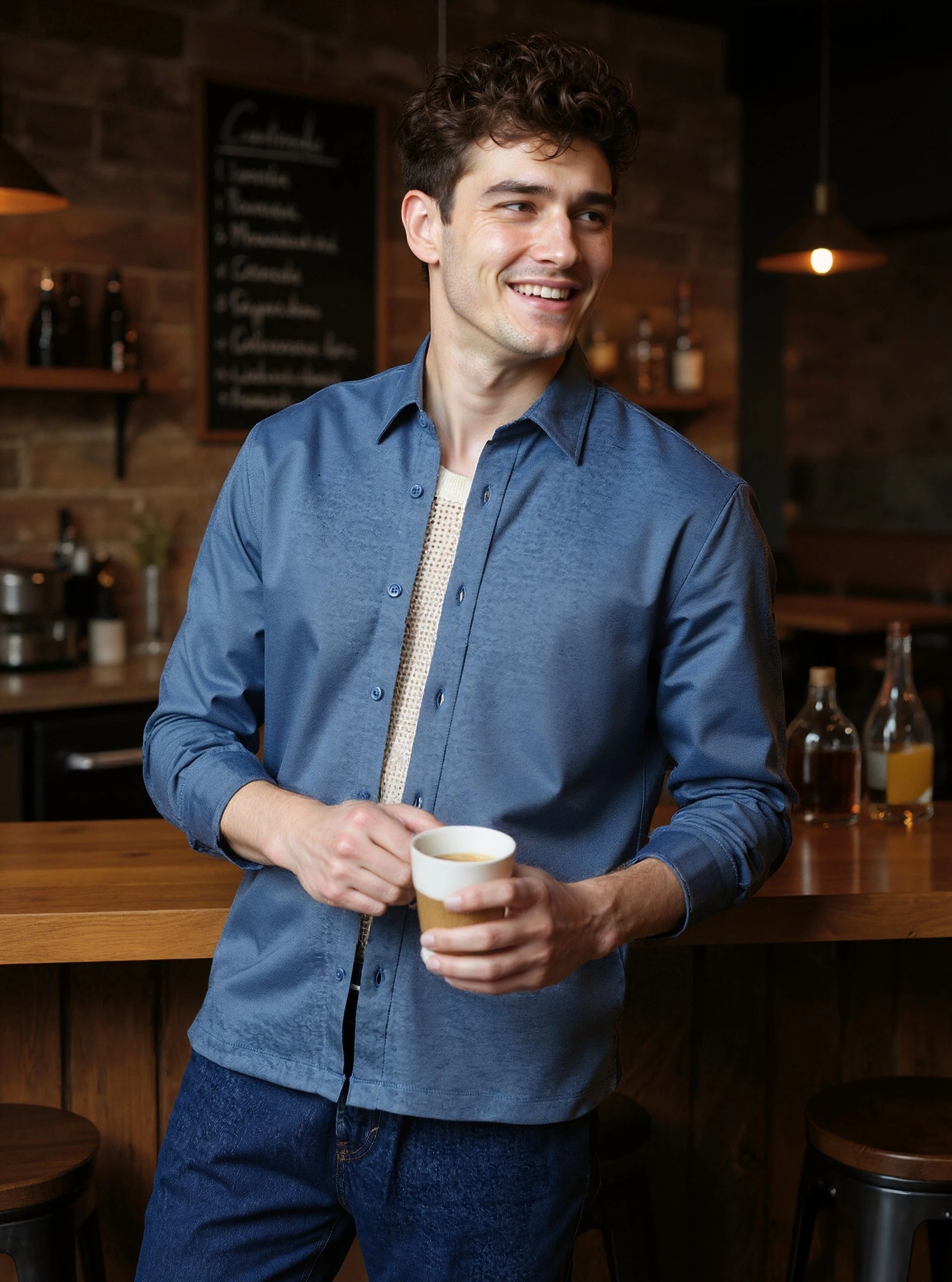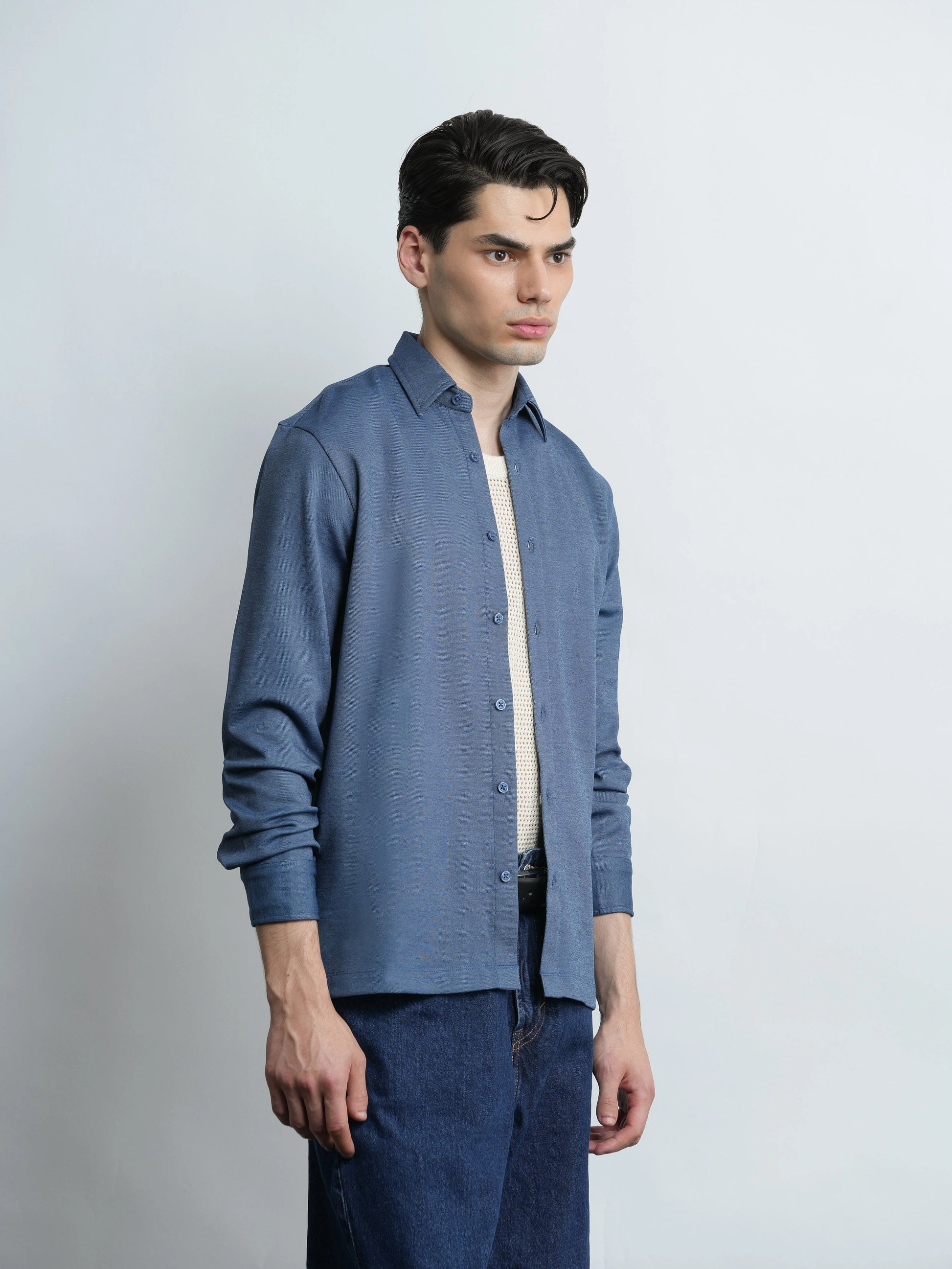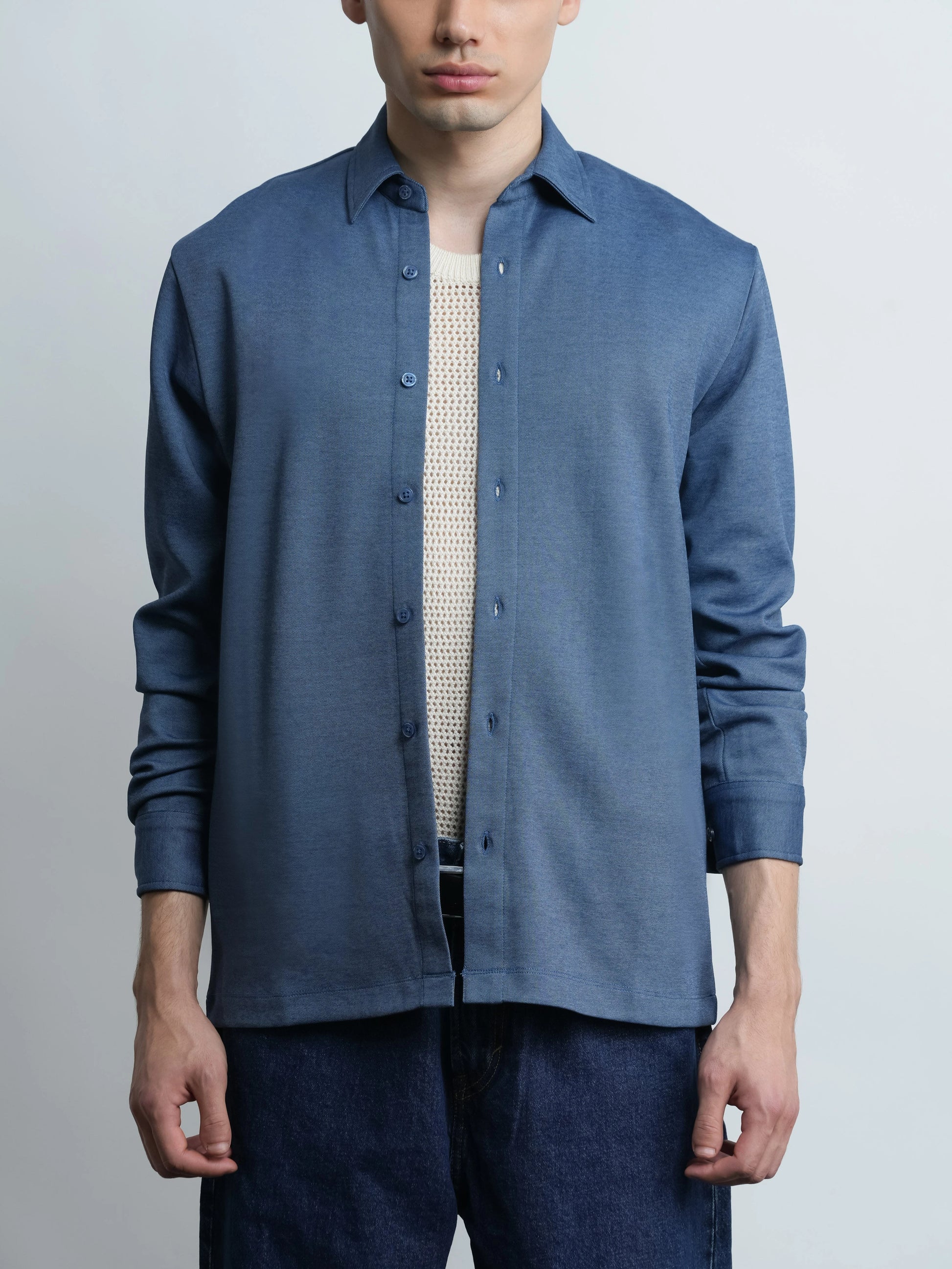 mercer knit shirt - denim blue
