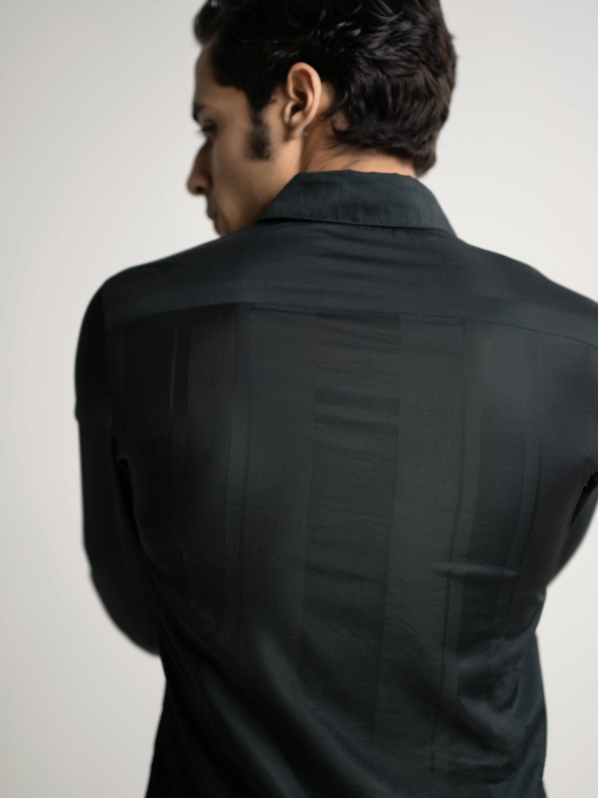 For nights that start with plans and end with possibilities. The Midnight Lane Shirt is designed for movement: fluid, sharp, and effortlessly bold. Crafted from a luxe viscose-nylon blend with a subtle sheen, it drapes just right, catching the light as you own the night. A tailored yet relaxed fit, sleek point collar, and lightweight feel make it perfect for wherever the evening takes you. Wear it solo for impact or layer it under a blazer for intrigue. Either way, you’ll leave an impression.