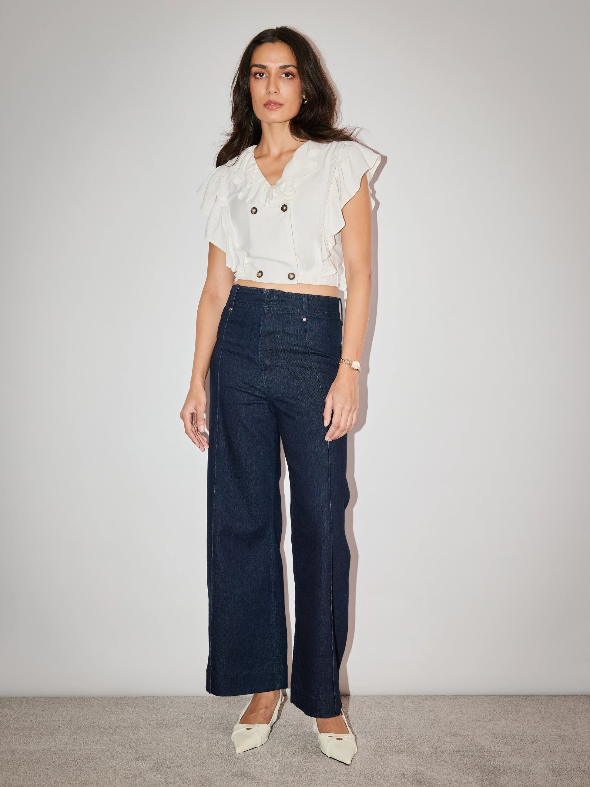 Home > Industrial Chic > Women > Ruffle Linen Double Breasted Top - White