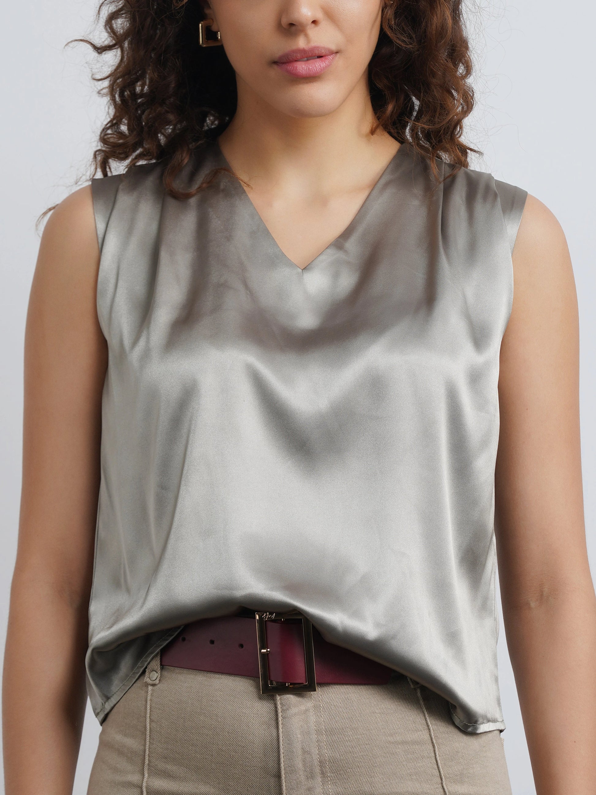 Effortless elegance, endlessly versatile. The Vortex Satin Blouse is a timeless essential, crafted from luxuriously smooth satin that drapes beautifully for a refined yet relaxed look. The classic V-neckline adds just the right amount of allure, making it perfect for both day and night. Whether paired with tailored trousers for a polished feel or styled with denim or shorts for a laid-back vibe, this piece is your go-to for understated sophistication.