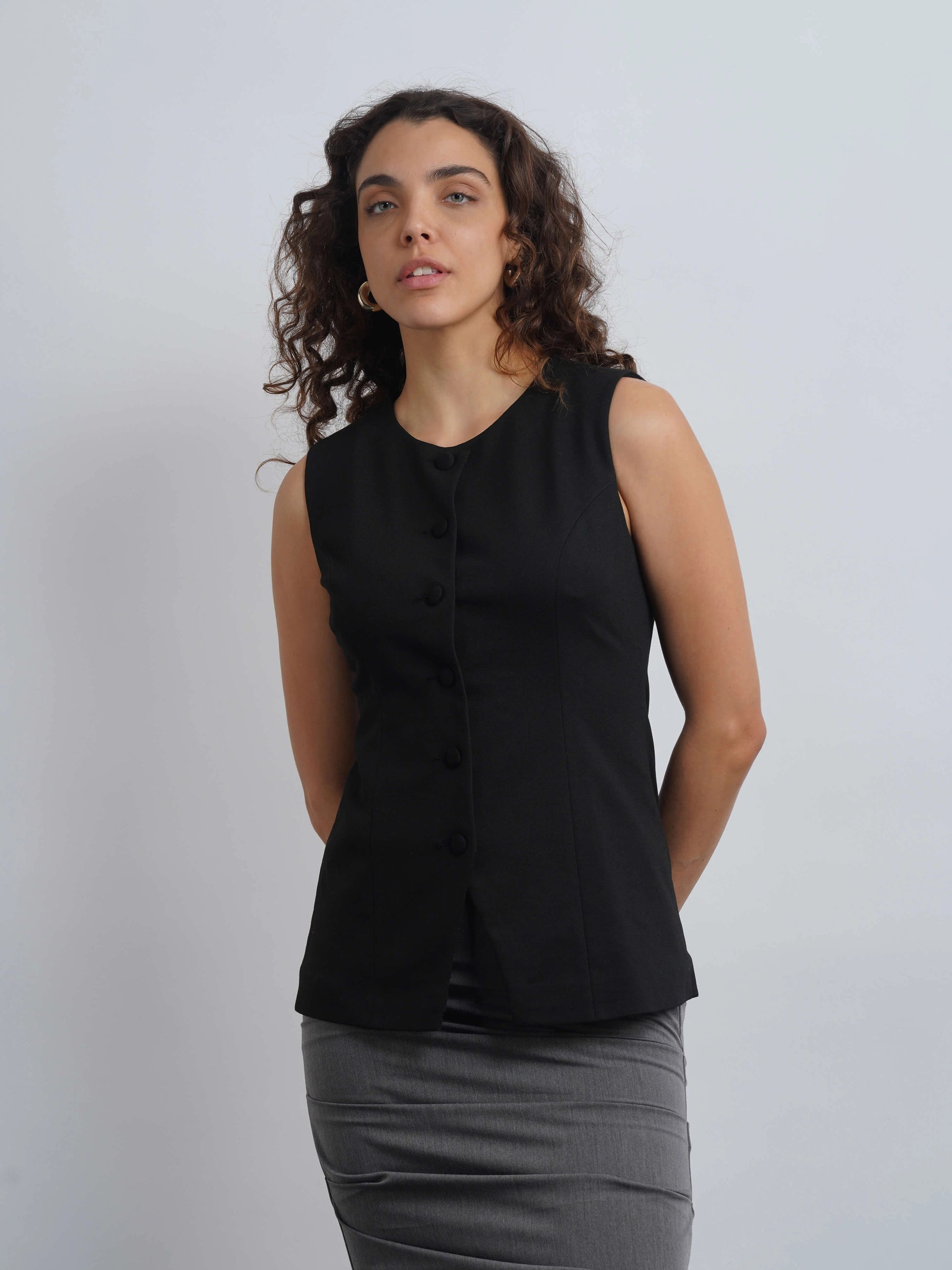 A modern take on a classic waistcoat - tailored to turn heads and made to move with you. Crafted in our structured-yet-stretchy poly viscose spandex knit blend, sharp lines meet smooth curves. With clean lapels, a cinched waist, and our signature figure-flattering cut, it’s designed to sculpt, streamline, and slip seamlessly into any outfit, from boardroom layering to night-out statements.